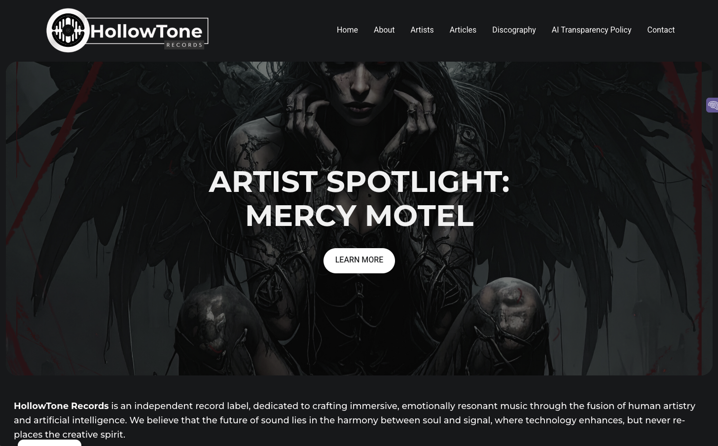 For Hollowtone Records, I developed a full-spectrum brand identity that reflects the label’s ethos: raw, cinematic, and emotionally charged. I crafted a voice and tone that balances poetic introspection with underground grit, designed to resonate with artists and listeners seeking authenticity over polish. The visual identity, including logo and typography, draws from analogue textures and minimalist geometry, evoking both nostalgia and edge. I designed and optimised the website to serve as a discovery platform and creative showcase, with intuitive navigation and immersive storytelling. From brand strategy to digital execution.