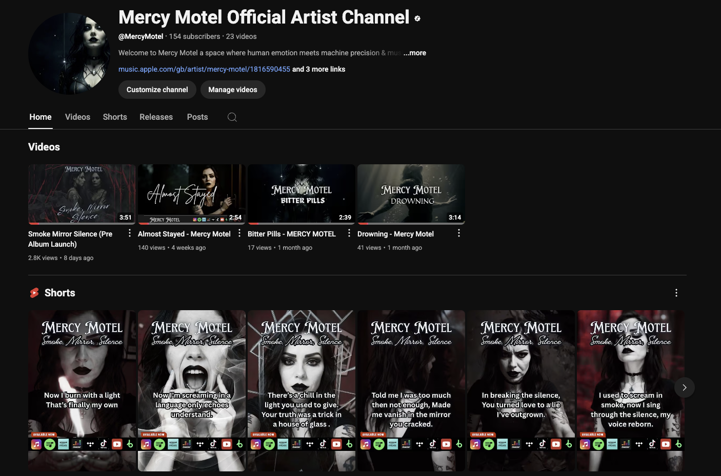 Mercy Motel is more than a music project, it’s a sanctuary for survival, storytelling, and sonic experimentation. I built its brand identity to reflect that duality: intimate yet expansive, fragile yet defiant. The logo is minimal and symbolic, echoing themes of transience and transformation. The voice and tone are rooted in emotional honesty. Poetic, raw, and quietly powerful, speaking to those who’ve lived through rupture and are rebuilding with grace. Across social platforms, I’ve shaped a visual and narrative language that invites connection without spectacle: textured imagery, lyric fragments, and behind-the-scenes glimpses into the creative process. Every element from typography to metadata is designed to honour the listener’s experience and the artist’s truth. Mercy Motel isn’t just a brand; it’s a refuge, a reckoning, and a reminder that beauty can rise from brokenness.